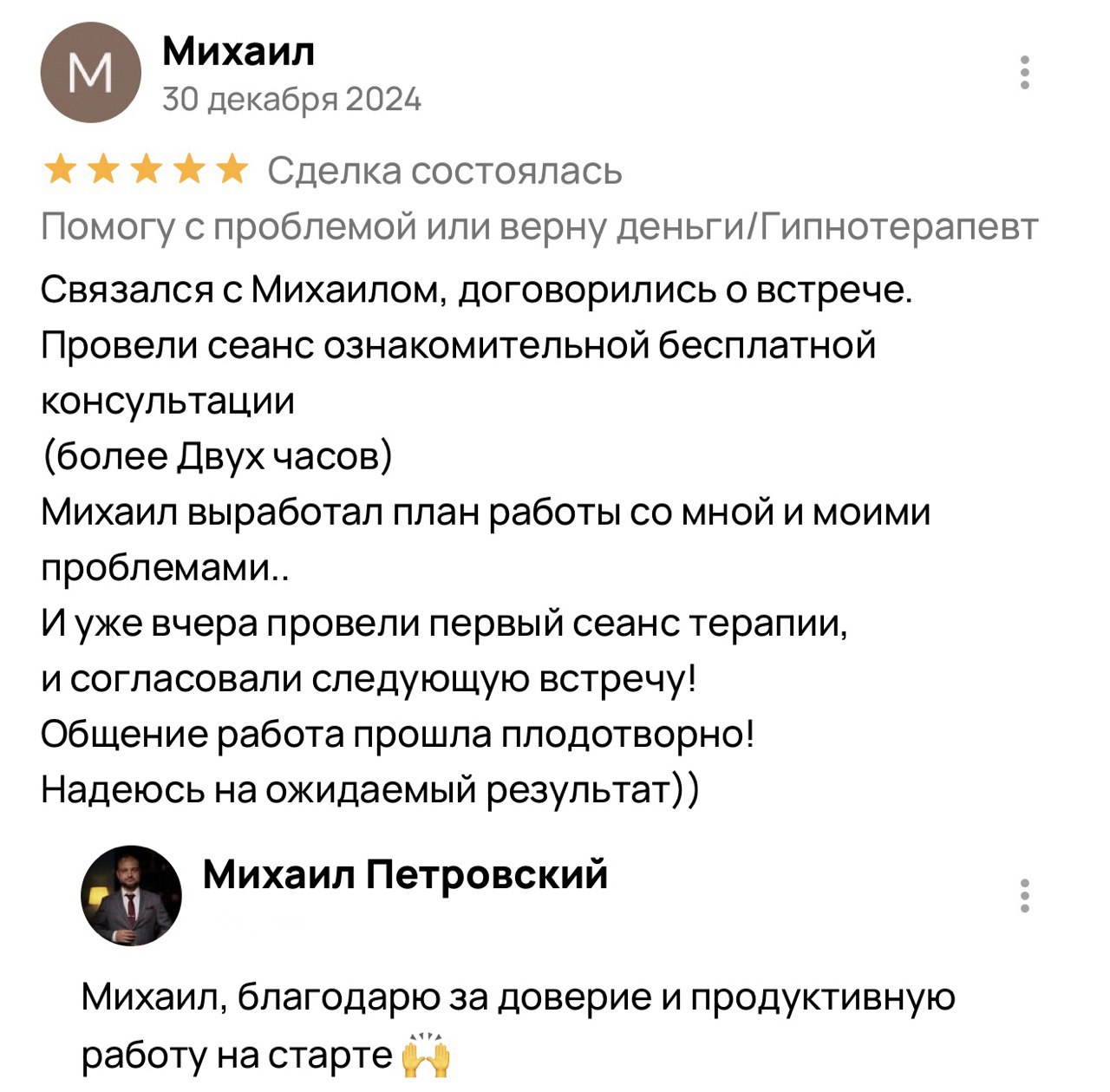 Ещё один пример мой клиент Михаил